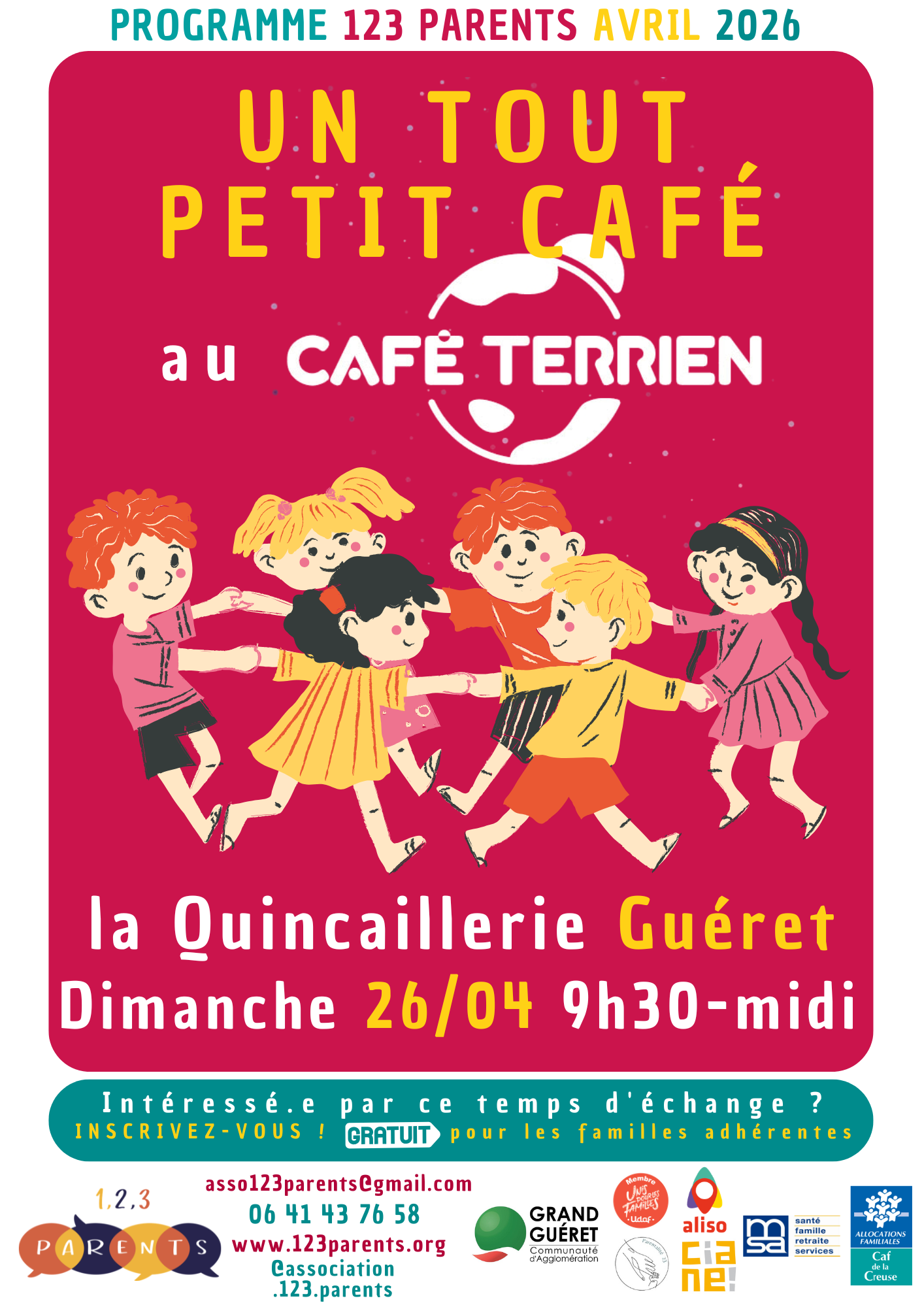 La nouveauté de ce mois d’avril, c’est l’inauguration d’Un Tout Petit Café en partenariat avec le Café Terrien ! Boire un café en papotant ? Oui, mais avec un espace adapté aux touts petits. RDV tous les derniers dimanches du mois à la Quincaillerie pour un moment convivial en famille !